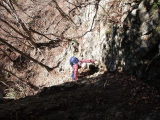 最初の滝を登る 新茅の大滝(12m)も氷は無し